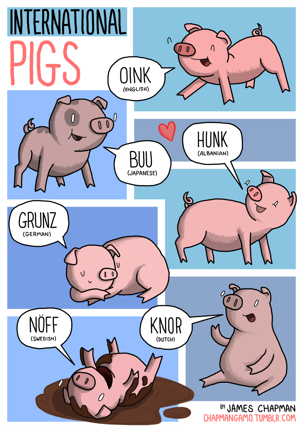 Animais teoricamente não falam um idioma, certo? Então nós devemos interpretar os grunhidos deles igualmente independente do idioma que falamos, certo? Errado.