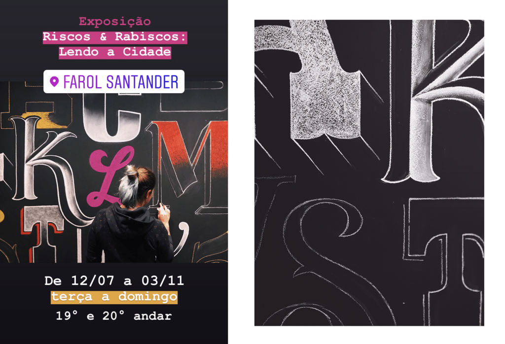 Desde 2013 quando comecei com as artes em giz, não havia muita coisa, mas depois percebo que virou uma febre. Por isso até, desenvolvi a Oficina de Giz (@oficinadegiz) por tanta procura e fico super feliz de ver vários alunos atuando e pagando suas contas com a arte. Já os letterings para fachadas e lojas – em tinta como sign painting e até a folha de ouro, é algo que sempre existiu né, a técnica é antiiiiga e linda, mas o bacana é que tá sendo mais valorizado agora. Acho que depois da digitalização, muita gente quis voltar pro artesanal. Percebo que o trabalho feito a mão e com design mais elaborado tá sendo bastante apreciado nesse momento.