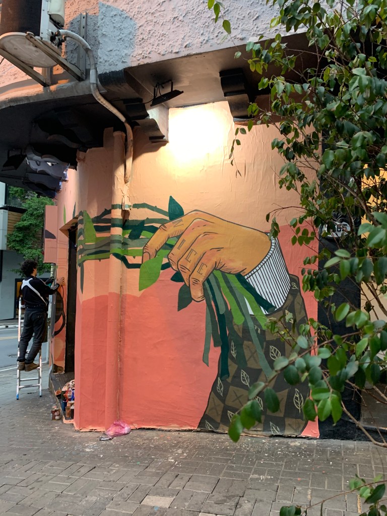 Hoje minha rotina é criar minha filha de dois anos com minha esposa e vamos encaixando as viagens e trabalhos no meio disso. Há 3 anos praticamente vivo só de arte, as vezes ainda faço alguns freelas de design gráfico, mas cada vez mais minha renda tem sido dos murais, quadros e ilustrações.