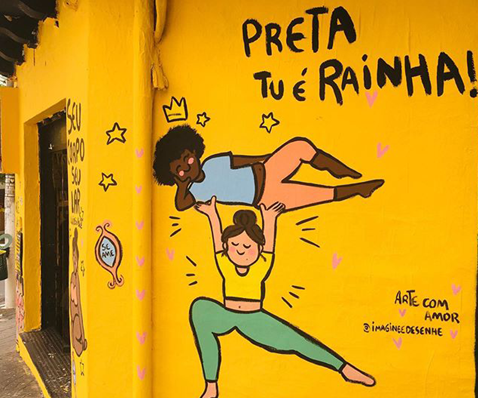Bruna: Nas laterais dos prédios do centro em São Paulo, no beco do Batman, e nos muros das periferias, pra fortalecer os nossos, e motiva-los sempre.