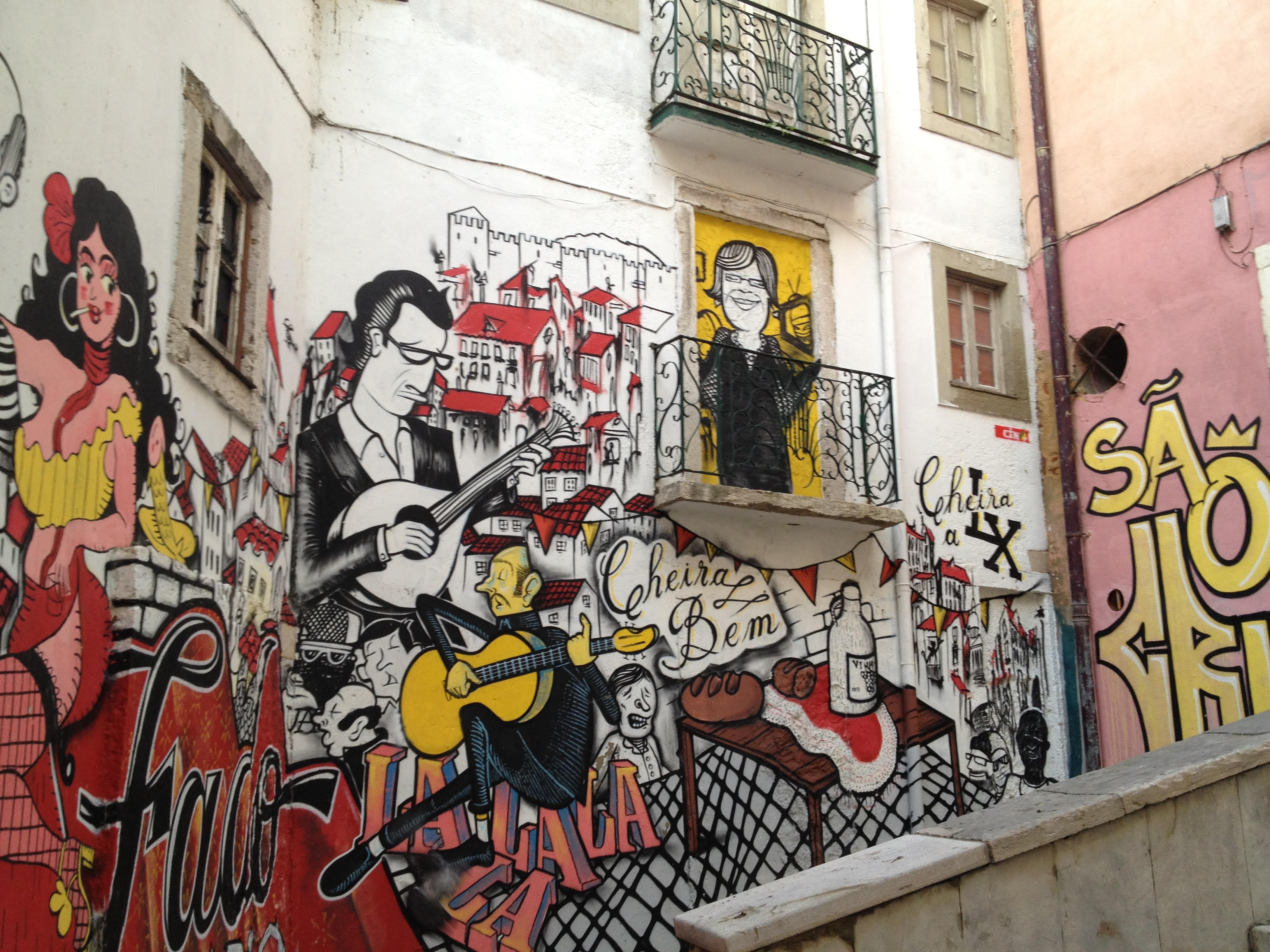 O grafite começou em Lisboa nos anos 70 como forma de protesto. Desde então, a cidade virou um museu ao ar livre, cheia de murais vibrantes, muitos feitos com apoio do governo. Por onde se passa, mesmo nos bairros históricos, podemos encontrar obras de artistas famosos mundialmente como Vhils, Bordalo II, Obey, AkaCorleone, Tamara Alves, Mário Belém e até Os Gêmeos, Blu e Sam3.