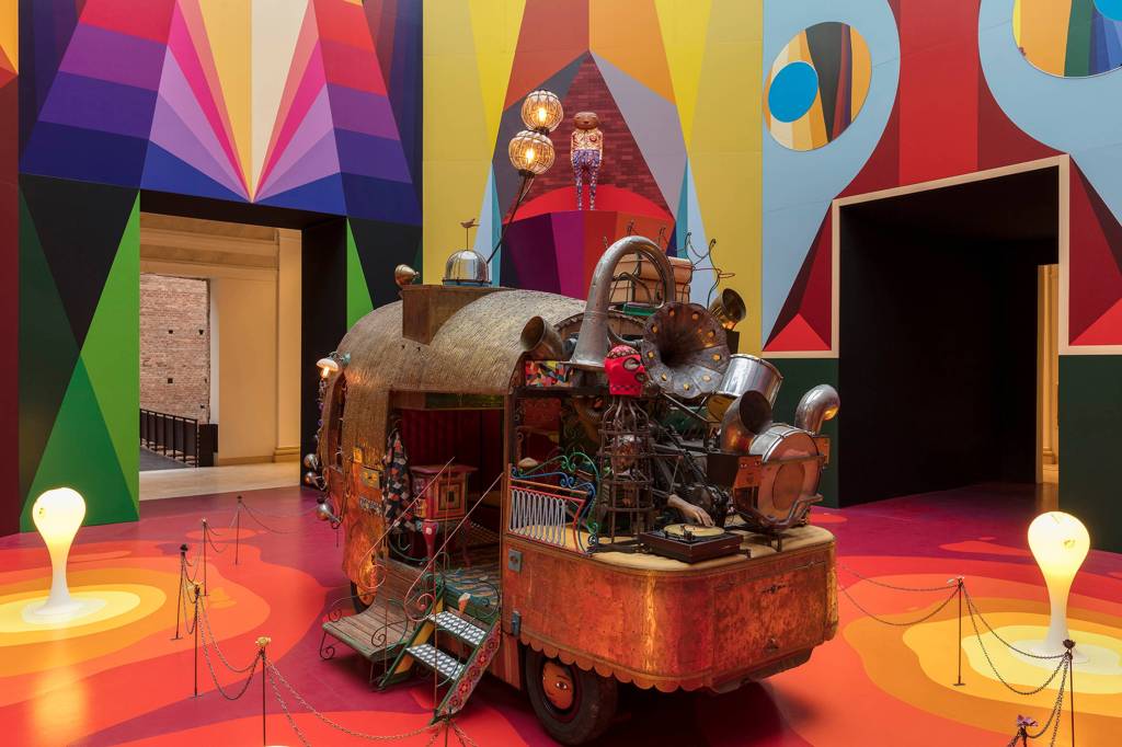 São inúmeras obras que invadem o museu, ocupando as sete salas de exposições temporárias do primeiro andar, um dos pátios, diversos espaços internos e externos, além de uma instalação, concebida especialmente para o Octógono, um dos grandes pátios do edifício. Tem até uma obra em parceria com Banksy!
