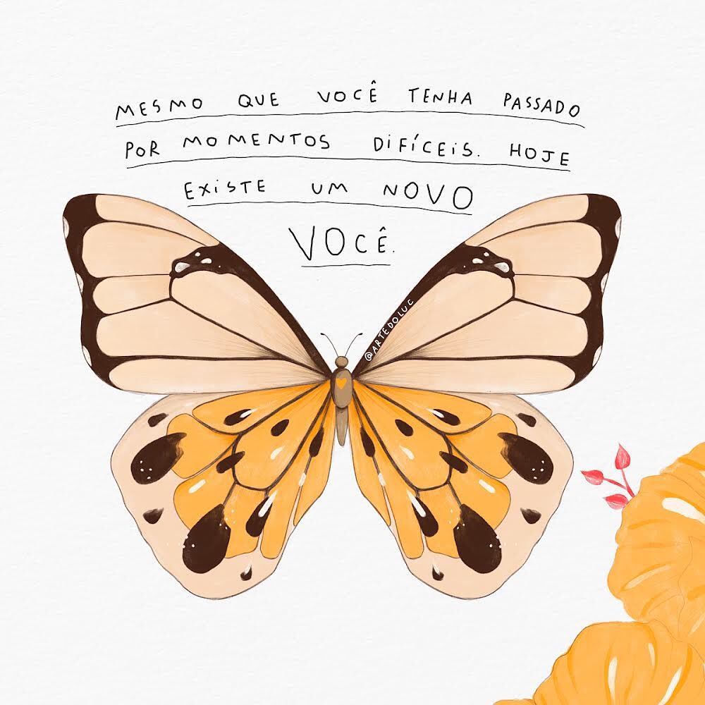 “Eu comecei a desenhar borboletas no começo da pandemia, em 2020. Sempre as olhei como símbolos de transformação, e elas vinham para mim com essa mensagem literal de abraçar a mudança. É algo que eu realmente acredito e vivo“.
