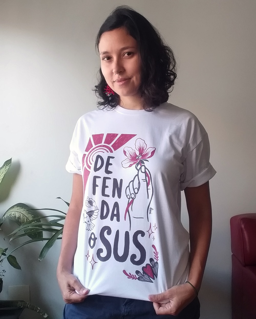 Arte autoral “Defenda o SUS” por Lari Arantes – Camiseta Basicona Unissex exclusivo EL CABRITON