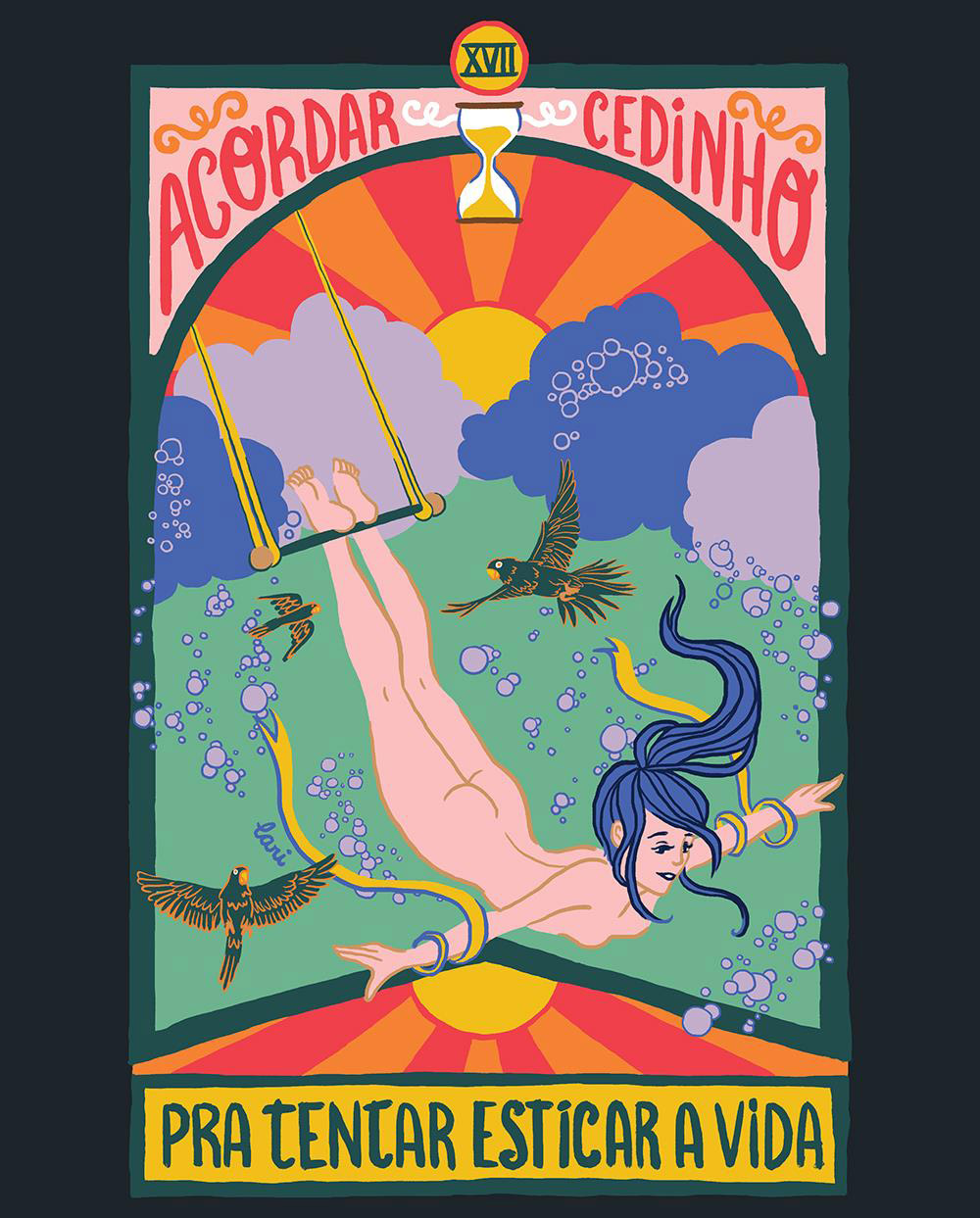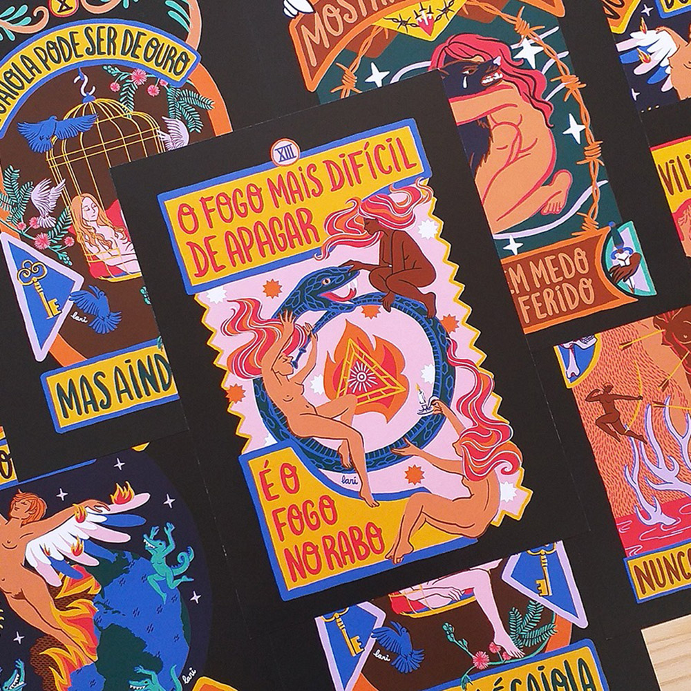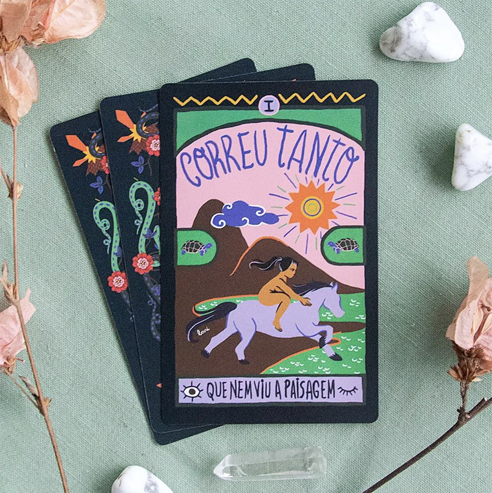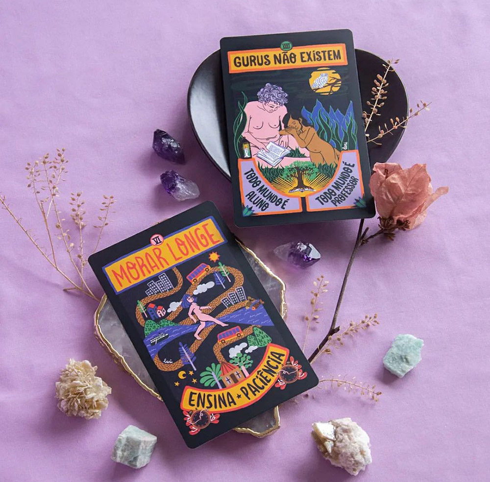 “Me aprofundar no universo dos baralhos ilustrados, especialmente em baralhos divinatórios, trouxe outra camada de significados ao meu trabalho artístico. Passei a me aprofundar também no universo simbólico e na síntese de mensagens complexas através de desenhos”.