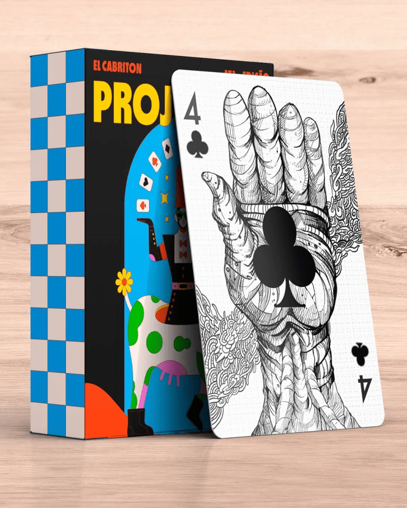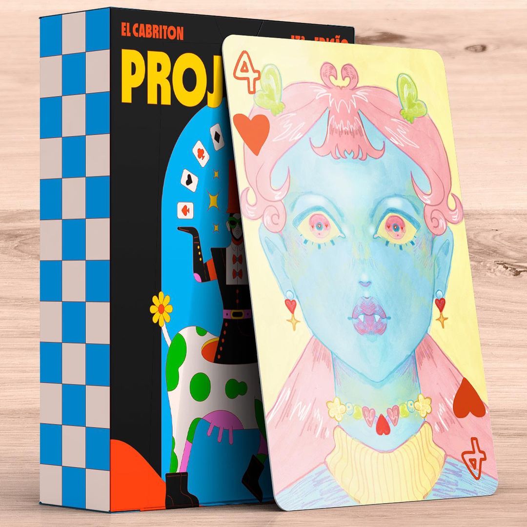 Este ano, Aline fez parceria com a El Cabriton para estampar camisetas e foi convidada para criar o 4 de Ouros no Projeto. Ela fala que sua inspiração para a carta foi baseada na identidade visual que costuma usar em suas publicações, um rosto com quatro olhos.
