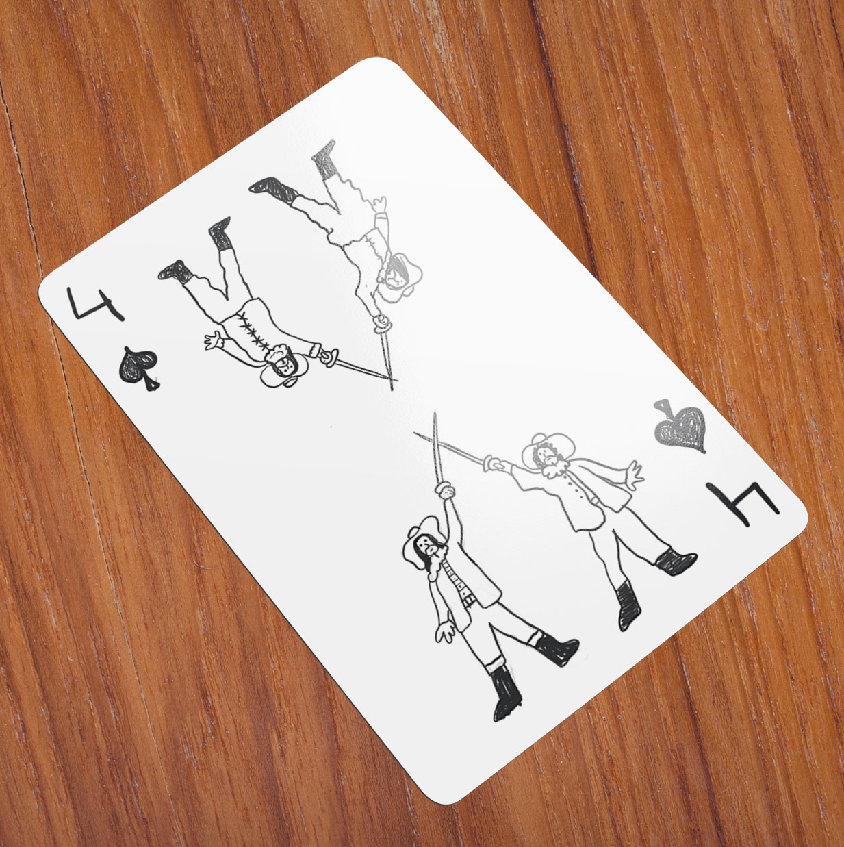 Assim surgiram os 4 caras com 4 espadas fazendo uma brincadeira com os mosqueteiros. A ideia foi a primeira que veio em sua cabeça. Ele gostou do significado que poderia transmitir e a levou em frente, uma característica de sua personalidade. “Vocês podem ver a qualidade do desenho, mas acredito que o significado vale alguma coisa. Quanto ao traço, não me julguem”, comentou rindo.