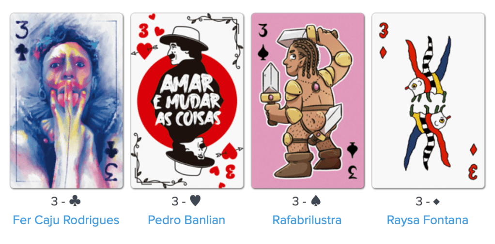 O resultado é o vemos impresso no baralho. No projeto, o que mais a surpreende é a quantidade de artistas incríveis que se juntam pra fazer acontecer.