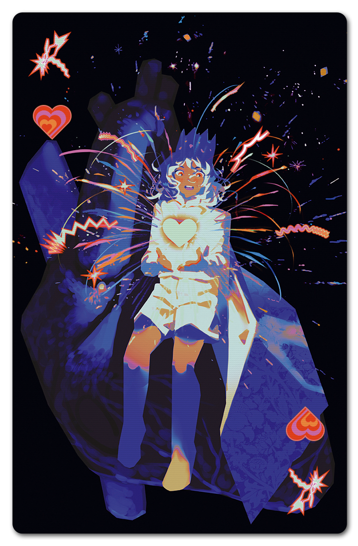 Para sua carta, o Rei de Copas, Matt fez a fusão entre a arte conceitual de fantasia e ilustração de anime japonês.