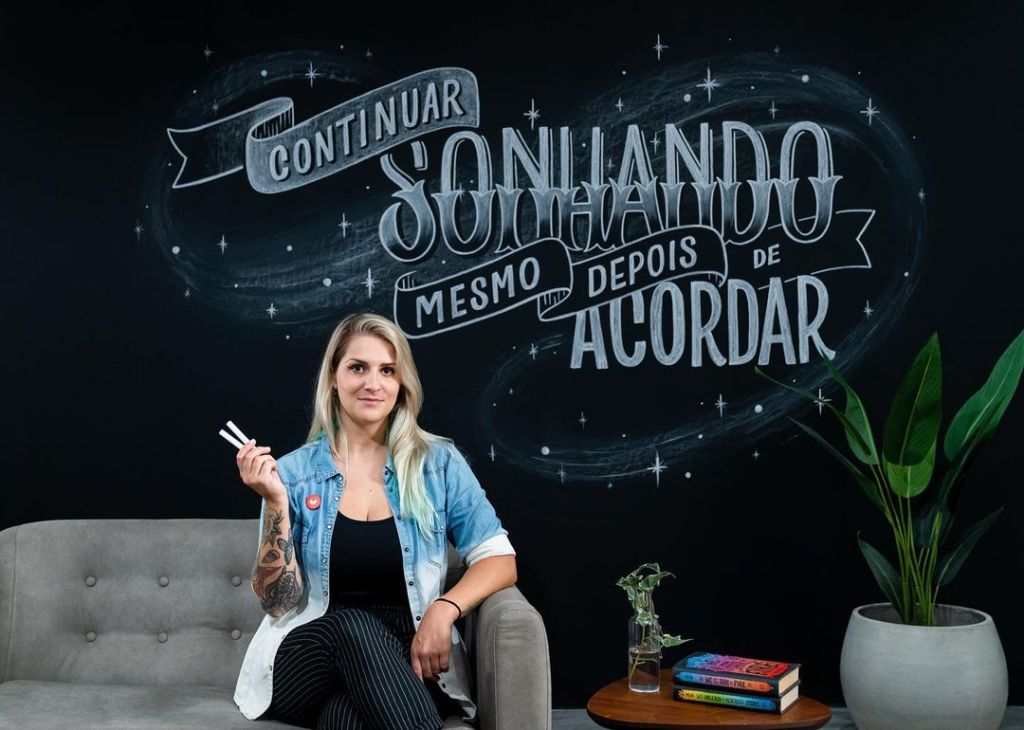 Em 2013, uniu seus aprendizados e técnicas com o seu talento e deu início a Oficina de Giz (@oficinadegiz). Também tem um curso on-line na Domestika; ensina desde o planejamento no papel, com dicas de decoração, estilos de letras, diferentes distorções e formas para dar movimento às artes até a execução final com redimensionamento para grandes formatos.