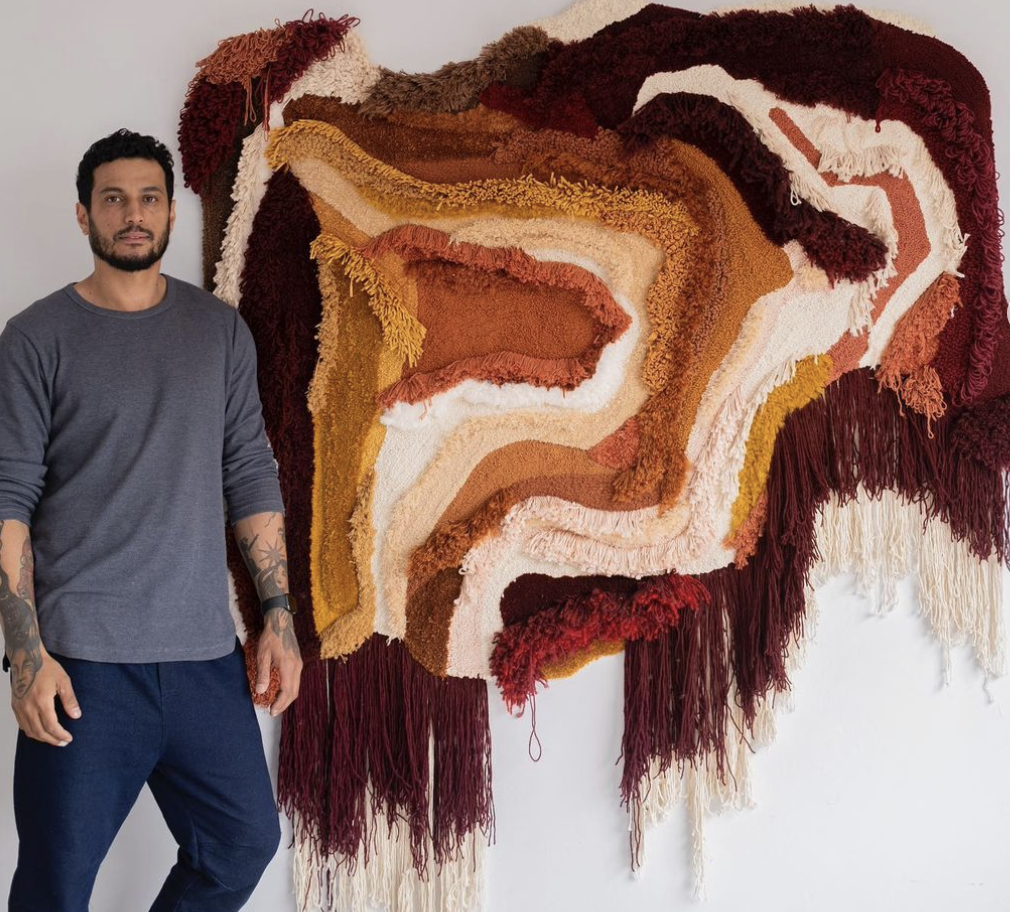 O artista têxtil curitibano cria artesanalmente tapeçarias únicas feitas com matérias primas naturais, fios e fibras como a lã e o sisal. Sensoriais e tridimensionais, suas peças instigam o olhar pelo equilíbrio, formas e padrões.