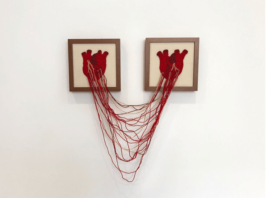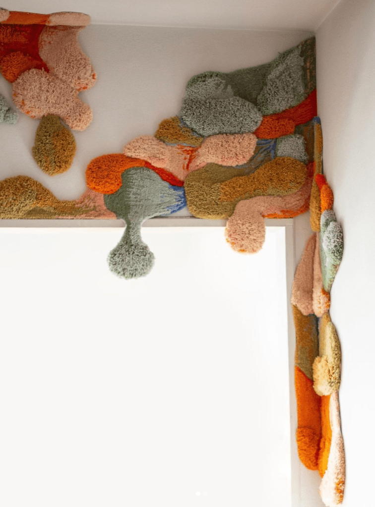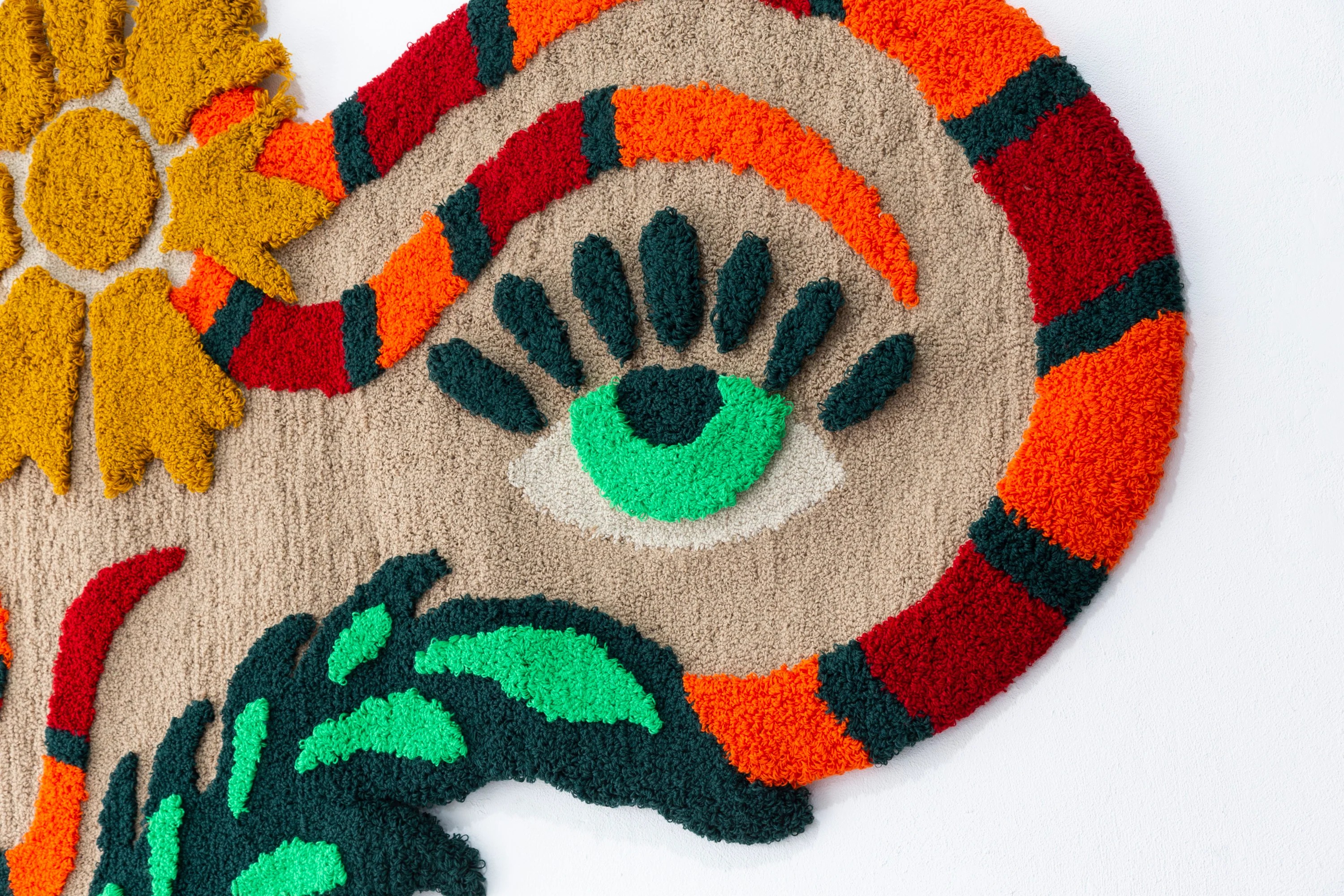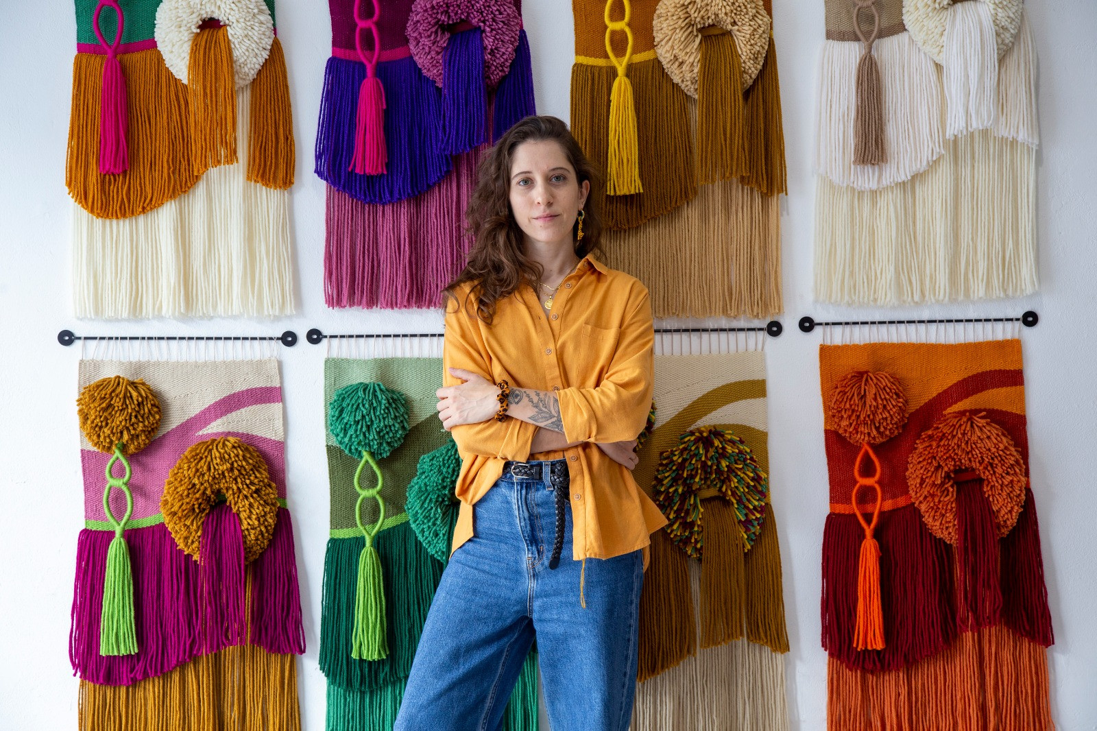 Jéssica Costa trabalha com técnicas manuais têxteis há mais de 10 anos e já percorreu diferentes espaços dentro deste meio. A artista aplica a técnica de tapeçaria feita por tufagem manual, um processo que se assemelha a pintura em tela, propondo matizes de cores, degradês, texturas e tridimensionalidade ao “esculpir” a lã.