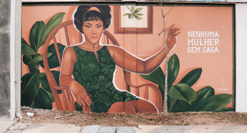 “Nenhuma mulher sem casa”, mural criado por Priscila Barbosa