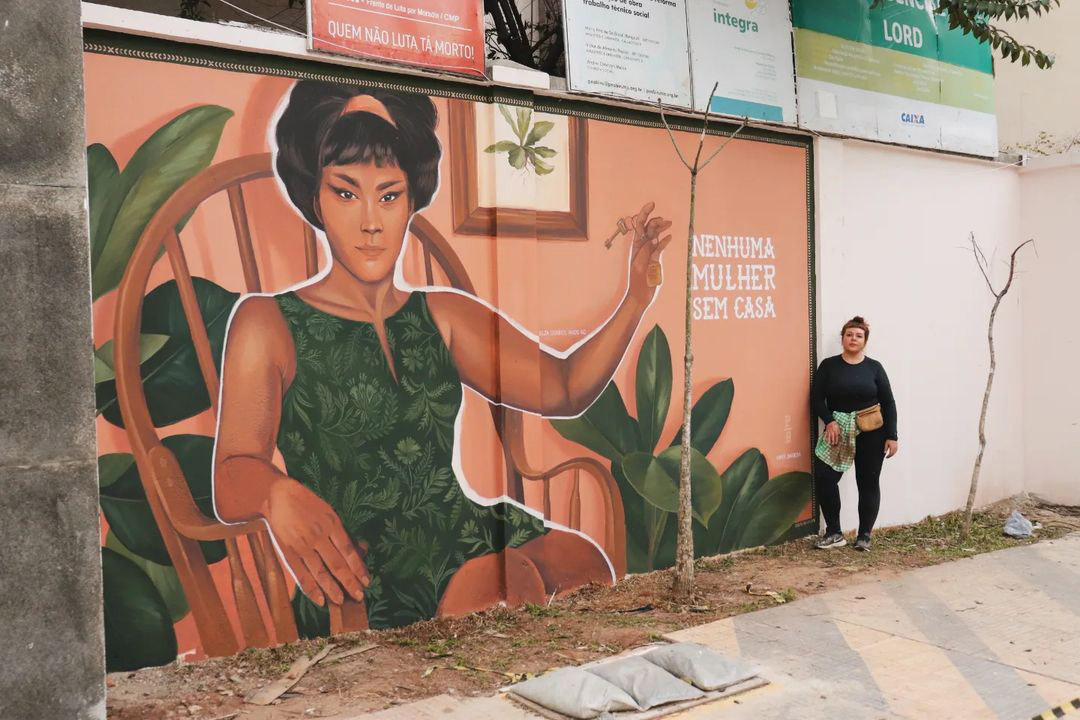 “Nenhuma mulher sem casa”, mural criado por Priscila Barbosa