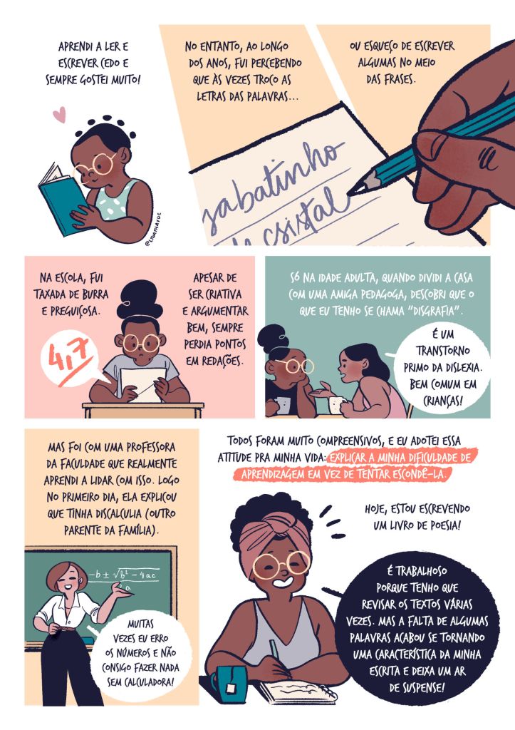 Como se não bastasse desenhar quadrinhos, a artista faz uma pesquisa aprofundada para escrever cada história a fim de aprender e entender cada particularidade de seus temas, traduzindo a realidade com humor e afeto.