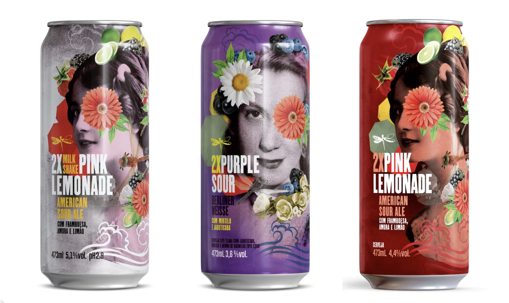 O intenso sabor de fruta e cor vibrante são a inspiração desta coleção da Dádiva Cervejaria, que brinca com ilustrações de mulheres dos anos 20/30 e utiliza belas colagens nas latas.