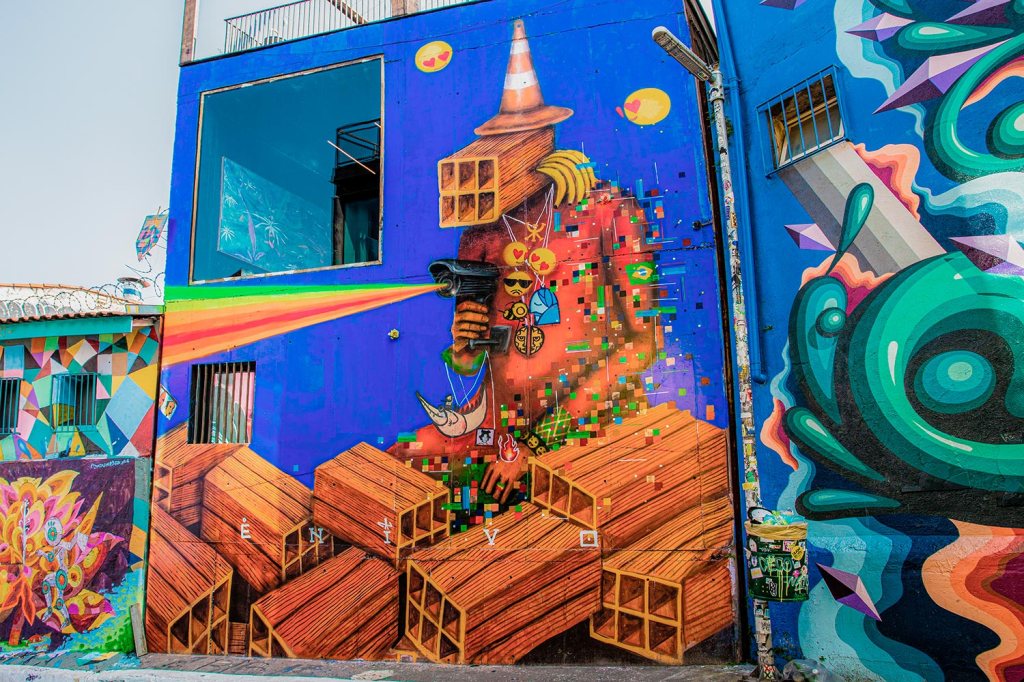 A partir daí, estudantes de artes plásticas passaram a cobrir com regularidade os muros do que chamaram de “Beco de Batman” com uma pegada cubista e psicodélica, ao utilizar as mais variadas formas e cores.