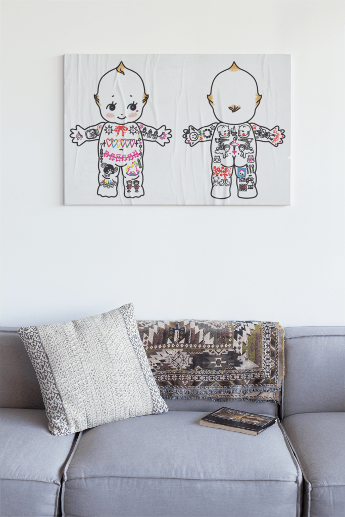 Ao se inspirar nos bonecos kewpie, Clara trouxe para seu lambe o bebê tatuado.