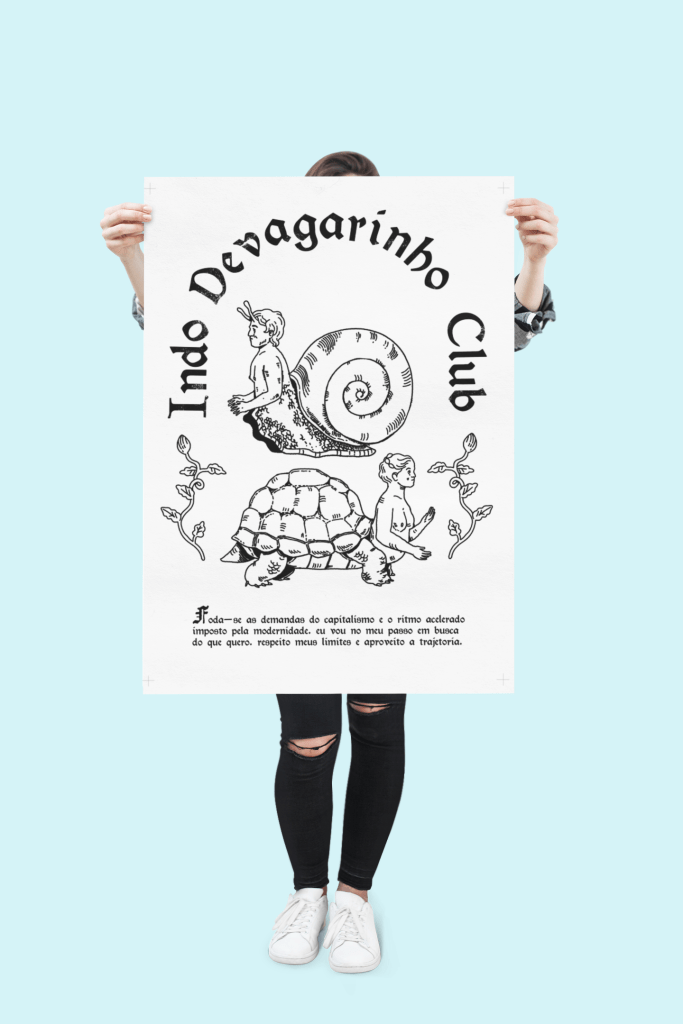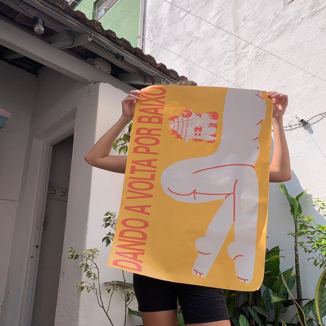Amanda é uma designer e ilustradora que se utiliza do humor para botar pra fora o que sente. É a criadora do lambe Dando a volta por baixo – já que por cima ela considera delírio de grandeza.