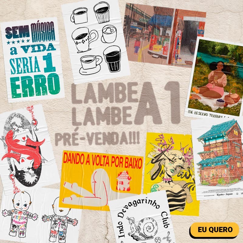 Anos depois, voltamos com os lambes ilustrados! Desta vez, convidamos 10 artistas independentes para ilustrar uma unidade cada, impressos em A1 como outdoor (impressão profissional). Conheça os artistas: