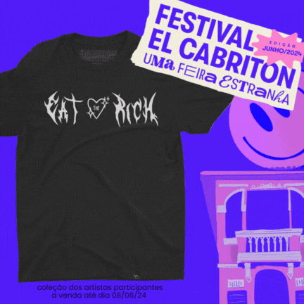 Lugar de arte é na RUA! É nisso que a gente acredita! E com muita felicidade anunciamos hoje a 4ª edição do Festival El Cabriton!! No Dia 08/06 vamos invadir a Rua Fortunato para um dia de CRIATIVIDADE, ARTE e o COMÉRCIO CRIATIVO! Mais de 80 artistas vão expor seus produtos de fabricação própria com venda direta ao consumidor final! Um grande festival de arte na rua!! Em parceria com os artistas participantes, lançamos uma coleção que fica no ar apenas por 30 dias, para ajudar a custear a feira! Ao comprar uma das peças, você ajuda o artista que a criou a expor em nossa feira sem custo! São mais de 90 estampas que tem venda até 08/06. Bora levar mais arte pro mundo ! |