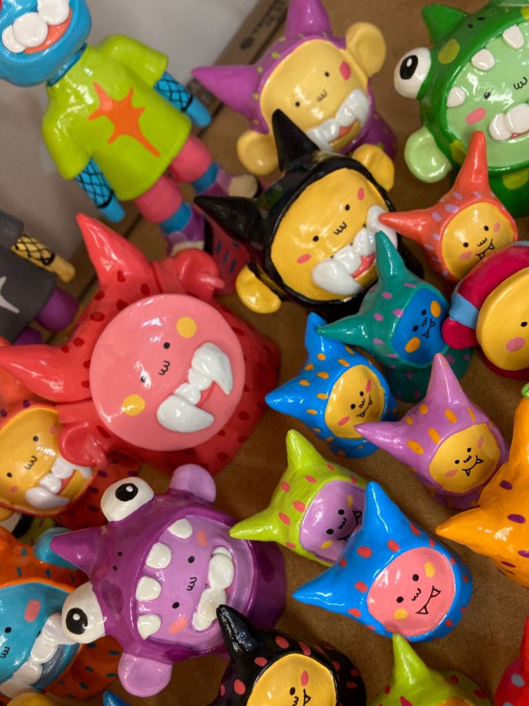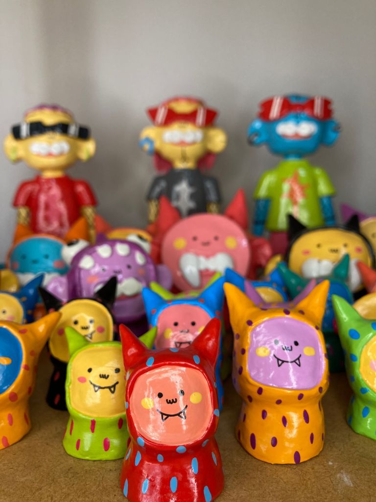 Eu tenho muitas inspirações, a arte dos Gêmeos foi um dos meus primeiros contatos com o mundo artístico. Lembro de ir durante a infância em uma exposição deles e ficar fascinada! O gosto pelo desenho animado também influenciou muito o meu trabalho, principalmente as animações: Hora de Aventura, Steven Universe, Flapjack, Meninas Super Poderosas. Hoje em dia eu me inspiro muito na galera que eu conheço que produz Toy Art, valorizo muito a troca de informações e ideias com o pessoal que também está nesse mesmo caminho e nesse desafio que é ser artista independente.